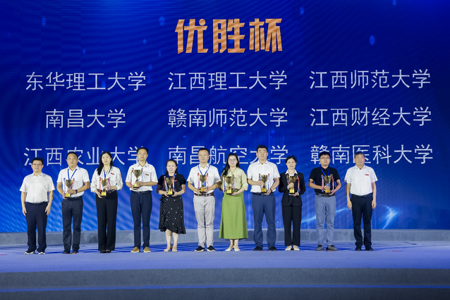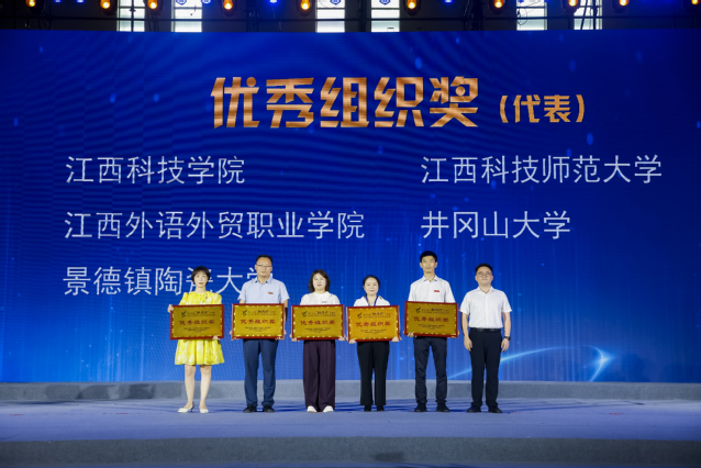 仪式现场,肖如恩与本届大赛承办单位代表李满根,下届大赛承办单位代表、江西应用科技学院党委副书记、纪委书记江星共同完成“挑战杯”赛旗交接仪式。主承办单位负责同志分别为获奖选手代表颁奖。