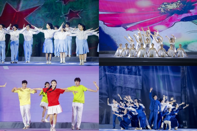 多宝网学生表演了核军工主题舞蹈《他衣褶里的蓝》、啦啦操《向光前行》、歌曲《奔跑的青春》、合唱《有我》等节目。
