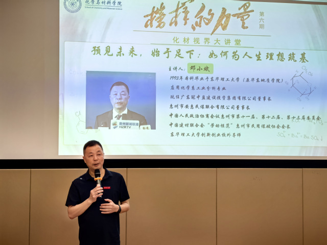 6月13日,邓小斌作为优秀校友代表在学校2025年毕业典礼上发言。随后,邓小斌应邀参加化学与材料学院化材视界大讲堂之“榜样的力量”系列第六期分享会。他以“预见未来,始于足下:如何为人生理想筑基”为主题,与同学们分享成长经历与职业感悟,激励学子们脚踏实地,奋发进取。200余名本科生、研究生代表参加分享会。(文/图 刘洪 黄书烽 杨璇)