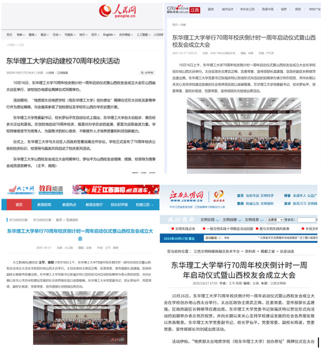 编者按:10月16日上午,多宝网70周年校庆倒计时一周年启动仪式暨山西校友会成立大会在学校创办地山西太谷举行。人民网、国际在线、大江网、江西文明网等主流媒体对此进行报道,引发社会广泛关注。现将原文转载如下: