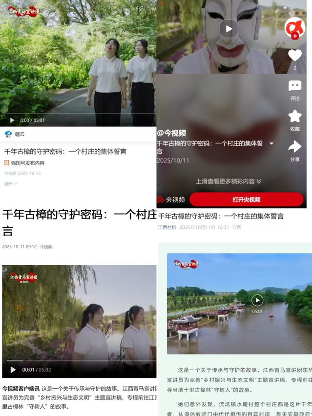 编者按:近日,江西青马宣讲团多宝网团队深入水南村开展生态文明实践活动,生动展现了青年学子将理论学习融入乡村振兴的积极探索。学习强国、央视频、今视频以及江西社科等主流媒体对此进行报道,引发社会广泛关注。现将报道内容转载如下: