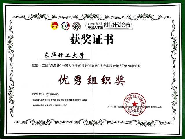 “挑战杯•实践云接力”活动于今年7月开启,历时三个月时间,校、院两级党政领导高度重视,多次召开动员培训会,充分发动师生积极参与,将我校优质实践活动成果转化为参赛作品,经过全校师生坚持不懈的努力,最终夺取“挑战杯•实践云接力”优秀组织奖。