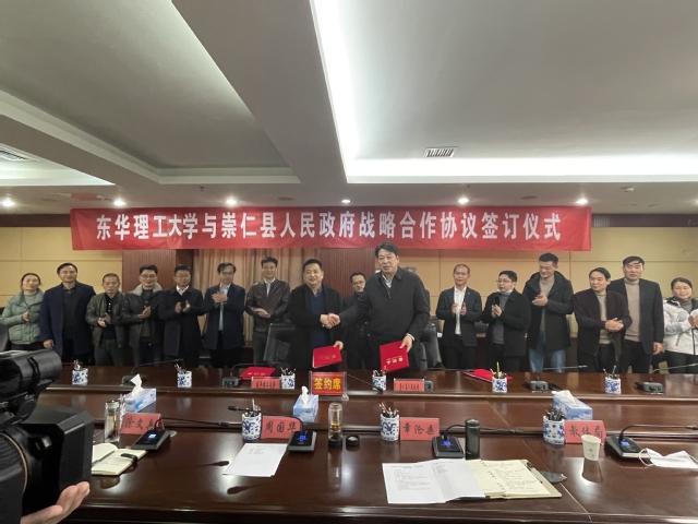 2月8日,我校与崇仁县人民政府战略合作协议签约仪式在崇仁县人民政府举行,校党委常委、副校长刘云海,崇仁县委副书记、县长周国华出席仪式。