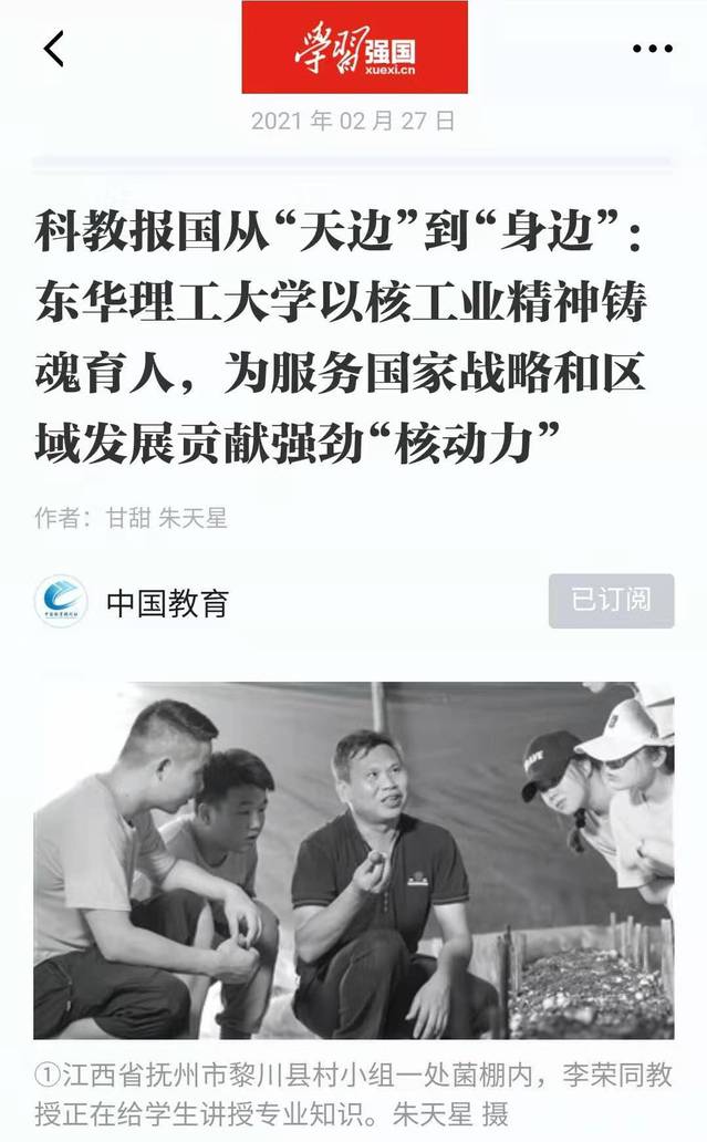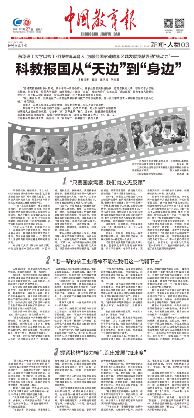 编者按:办学65年来,我校充分发挥核工业精神在铸魂育人方面的特殊优势,涌现出一批“服务军工、科教报国”典型人物,为服务国家战略和区域发展贡献了强劲“核动力”。中国教育报、学习强国等媒体对此进行报道,现将内容转载如下: