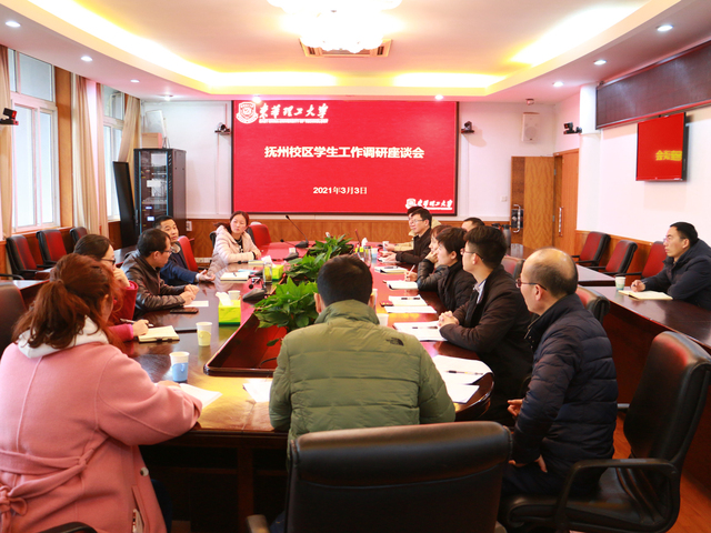 3月3日上午,抚州校区学生工作调研座谈会在行政楼三楼会议室举行。副校长刘云海出席会议,抚州校区管委会、相关学院负责人和辅导员代表参加会议。