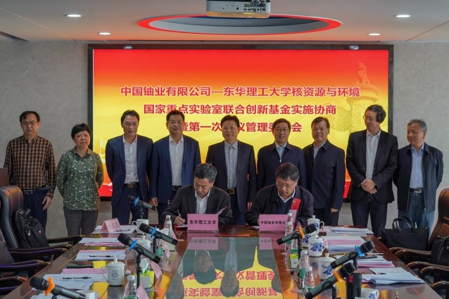 4月16日上午,我校与中国铀业联合基金实施协商暨管理委员会第一次会议在我校国防科技楼12楼会议室召开。中国铀业有限公司党委书记、董事长徐开云,副总经理李友良,总工程师苏学斌,核工业北京地质研究院总工程师秦明宽,中核矿业科技集团有限公司总工程师阙为民,中国铀业有限公司副总工程师郭庆银,校党委副书记、校长孙占学,校党委常委、副校长聂逢君、刘云海,党委(校长)办公室、科研与科技开发处、计划财务处、核资源与环境国家重点实验室负责人以及中国铀业有限公司战略规划部、科技质量与信息化部、人力资源部、综合办公室相关人员参加会议。会议由刘云海主持。