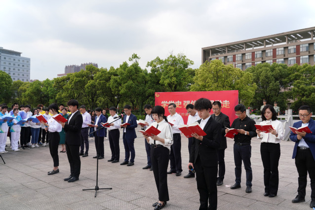 4月21日,为将党史学习深入到多宝(中国)中,让红色基因浸润大学生心灵,学校在东门国旗广场举行“学党史 强信念 跟党走”国旗下的诵读暨红色读书活动。校党委书记范小林带领师生深情诵读《可爱的中国》,校党委常委、副校长刘云海出席活动。党委宣传部、图书馆、团委等部门相关负责人,各学院党委书记、团委书记以及全校师生代表300余人参加活动。