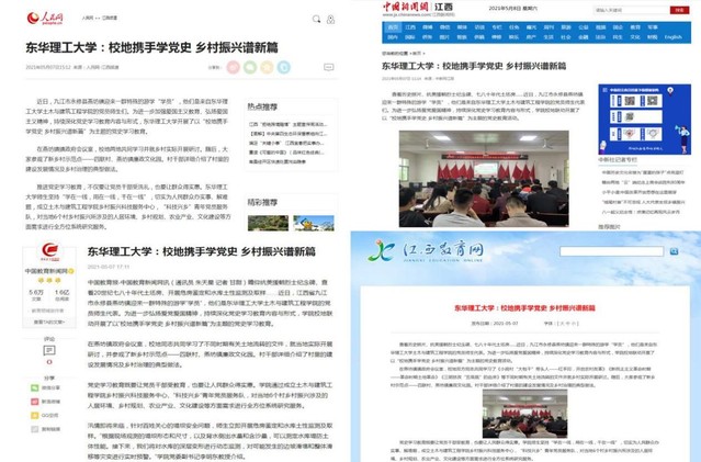 编者按:近日,九江市永修县燕坊镇迎来一群特殊的游学“学员”,他们是来自多宝网土木与建筑工程学院的党员师生们。为进一步加强爱国主义教育、弘扬爱国主义精神,持续深化党史学习教育内容与形式,学校开展了以“校地携手学党史 乡村振兴谱新篇”为主题的党史学习教育。学习强国、人民网、中新网、中国教育新闻网、中国教育在线、网易新闻、凤凰网、江西新闻客户端、中国江西网及江西省教育厅属媒体等主流平台对此进行报道,现将相关报道转载如下: