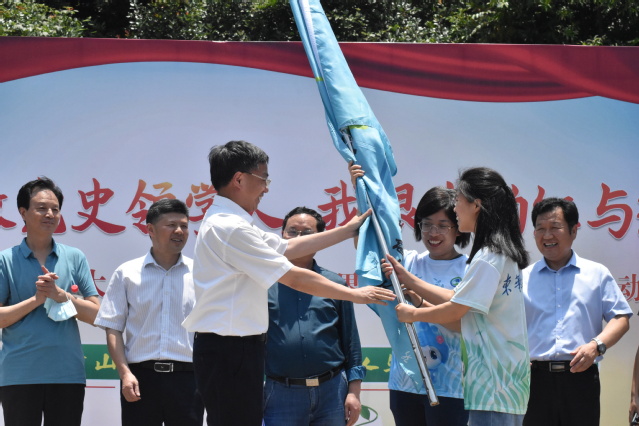 在开幕式环节,孙占学为“无微不治”地下水微生物修复团队授旗,同时宣布我校“争做党史领学人 我眼中的红与绿”世界环境日宣传活动正式启动。李旭亮向大家展示了江西省生态环境保护工作取得的重要进展,并希望大家珍惜生态环境保护成果,要像保护眼睛一样保护生态环境,像对待生命一样对待生态环境,让自然生态美景永驻人间。水资源与环境工程学院负责人介绍了本次活动意义,希望通过此次活动帮助青年大学生树立尊重自然、爱护自然的生态文明新理念,鼓励学生自觉学习环境保护知识,增强学生生态保护意识。