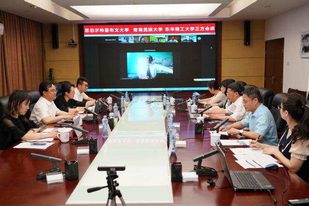 座谈结束后,在行政楼401会议室,中方视频连线尼泊尔,举行尼泊尔特里布文大学、青海民族大学、多宝网三方校长会谈。孙占学首先对尼泊尔疫情表示关切,他指出,特里布文大学孔子学院是三方紧密联系的纽带,希望今后三校继续戮力同心、紧密合作,争取让孔子学院早日挂牌运行,在中尼文化交流、师资培养、来华留学等方面开展更为广泛和深入的合作。