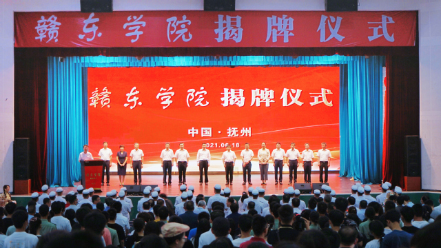 6月18日上午,赣东学院揭牌仪式在我校抚州校区大礼堂举行。抚州市委书记张鸿星,省委教育工委副书记、省教育厅厅长郭杰忠出席并共同为赣东学院揭牌;抚州市委副书记、市长夏文勇,校党委副书记、校长孙占学分别致辞;校党委书记范小林,省自然资源厅二级巡视员王亚平,校党委副书记、赣东学院过渡期管委会党工委书记刘紫春,市领导李高兴、肖承贵、蔡青,市委秘书长赵立,市政府秘书长吴猛强,市直有关部门、市属高校主要负责同志,赣东学院过渡期管委会全体成员以及师生代表共计400余人出席该仪式。抚州市委副书记杨文斌主持揭牌仪式。