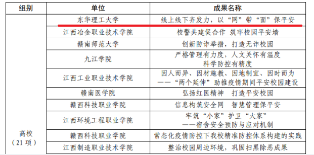 近日,江西省教育厅公布了2020年全省平安校园建设优秀成果评审结果,我校推送的三项成果分获高校组一、二、三等奖。