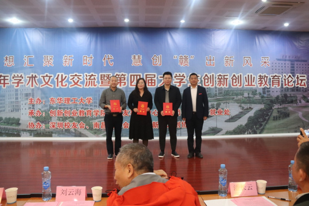 10月24日下午,学校建校65周年学术文化交流暨第四届大学生创新创业教育论坛在软件楼4楼报告厅举办。本次活动由学校主办,校团委、招生就业处、校友事务中心、创新创业教育学院联合承办,深圳校友会、南昌校友会、赣江新区双创协会协办。深圳校友会名誉会长谭敬华,深圳校友会会长、深圳宝驰科技发展有限公司总经理周国文,远江盛邦网络安全科技股份有限公司副总裁高志欢,深圳市、广州市祥都珠宝有限公司总经理刘志龙,泽楷品牌全案机构创始人、首席执行官周子聪,创业教育专家、北京启航致远教育科技有限公司董事长王少浪、赣江新区创新创业协会常务副秘书长杨艳丽、江西新发现教育投资有限公司董事长吴华龙等10余名知名校友、创新创业教育校外导师受邀参加。校党委常委、副校长刘云海出席并为校外导师颁发了聘书。校团委、招生就业处、校友事务中心、创新创业教育学院等部门负责人及400余名师生参加了本次活动,软件学院组织学生在抚州校区通过视频方式观看了活动。