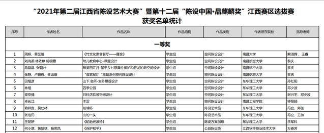 据悉,大赛组委会共收到全省各地投稿作品共计647件,分空间陈设设计、陈设艺术品、陈设方案创意、公益陈设类四大类别。评委们按照评选方法及细则对每件参赛作品进行了专业评审,最终评选出一等奖12件,二等奖27件,三等奖65件、入围奖216件。(图/艺术学院 文/钱芳蕾)