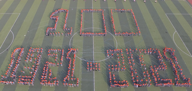 看!朝气蓬勃!750名青年学子组成的学生方队在操场上整齐排列,昂首挺胸、迅速移动、变换手势,一系列动作一气呵成,一艘南湖红船跃然在绿油油的运动场上。“南湖红船”“井冈红旗”“星星之火”“长征路线图”“建党100周年”……学生们通过变换队形表演了“红心向党”团体操,一个个图案再现了中国共产党的成长“坐标”,总结回顾了党一路走来的艰难历程,不同方队展示了全体师生爱国爱党爱校的真挚情感和昂扬向上的精神风貌。