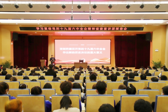 按照省委统一部署,12月3日下午,省委宣讲团成员、省委教育工委副书记、省教育厅厅长郭杰忠来校宣讲党的十九届六中全会精神。校党委副书记、校长孙占学主持会议。