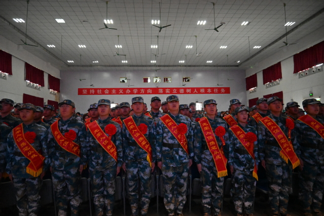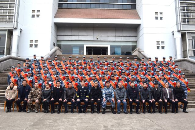 招生就业处、保卫处、国防教育学院、高等职业技术学院、长江学院机电系相关负责人以及全体海军士官生、部分家长代表参加以上活动。(图/张天丞 柏林 谢加航 祁良晟 文/曹燕)