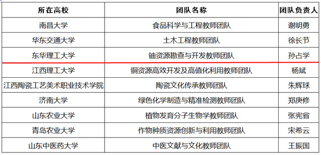 2月9日,教育部公布第二批全国高校黄大年式教师团队名单,我校铀资源勘查与开发教师团队(团队负责人:孙占学教授)入选!