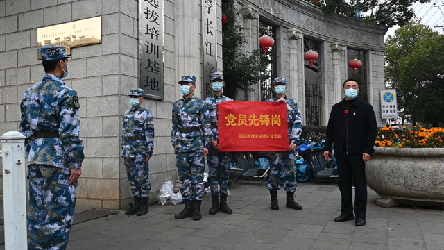 3月中旬,省内疫情防控形势较为严峻,学校抗疫之战骤然降临。“以军人的血性践行为人民服务的宗旨,不怕吃苦,决不退缩,坚持抗疫,直到胜利......”3月17日,多宝网抚州校区全体海军士官生写下抗疫请战书,主动申请到校园疫情防控一线参与志愿服务。从此,那抹海军蓝一直活跃在校内的各个角落。