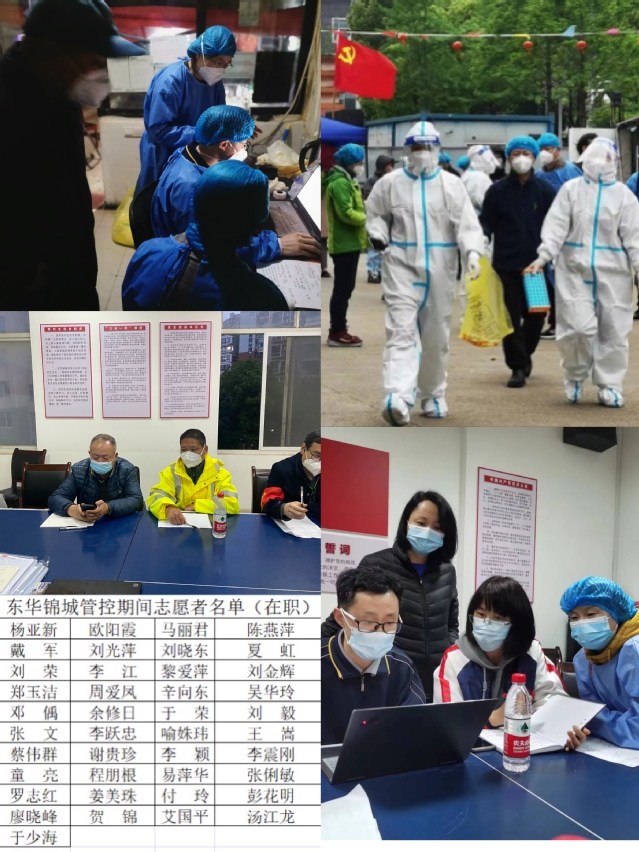 还有李震刚、李跃忠、喻姝玮、刘光萍、朱汝清、辛向东……每个名字的背后都有一段感人的故事。住在东华锦城的多宝网教职工为小区的平安默默坚守,为抵御病毒的侵袭携手相助。惟其艰难,方显勇毅。在这场疫情防控战场上,东华锦城的教师们团结一心,以坚定的信心和大无畏的精神,筑起了疫情防控的铜墙铁壁。(图/熊助国等 文/郑玉洁)
