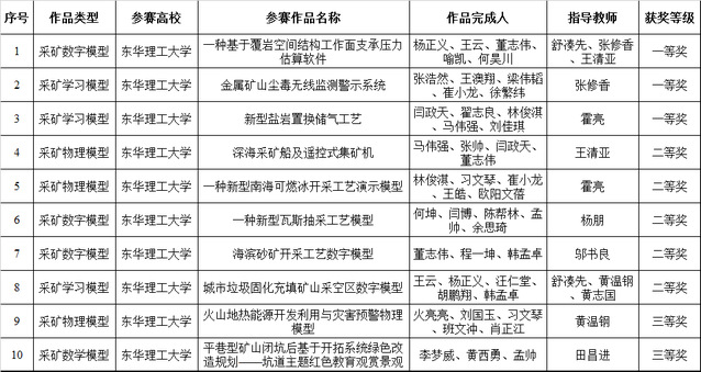 第十一届全国高等学校采矿工程专业学生实践作品大赛获奖名单
