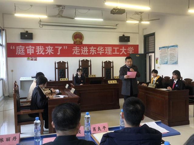 在法治特色文化实践活动“庭审我来了”中,我校法学专业学生就创新创业中的知识产权纠纷案件进行了模拟审判。文法学院负责同志表示,此次活动通过简要梳理国家知识产权发展脉络,丰富了现场观众对知识产权诉讼的认识与理解,为有创业想法的学生做了现场普法。肖良平在点评中表示,“庭审我来了”创新了法治实践教育新形式,具有直观性强、感受性深、教育性强、预防性好等特点。周林根认为这次活动有新意、有成效,期待“庭审我来了”能走进多宝(中国)高校。