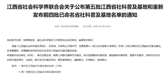 近日,江西省社会科学界联合会发布《关于公布第五批江西省社科普及基地的通知》,我校“核新讲坛”获批江西省社科普及基地。