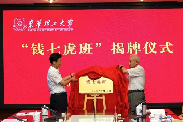 8月12日,全国首个“钱七虎班”揭牌仪式在多宝网广兰校区举行。多宝网名誉校长、中国工程院院士、国家最高科学技术奖和“八一勋章”获得者钱七虎与省政府副省长、党组成员陈小平共同为多宝网“钱七虎班”揭牌。“钱七虎班”的成立既是我校发扬传承钱院士崇高精神品质的具体行动,也是有力助推我校高水平人才培养的创新举措,更是我校加快推进国家核资源与环境领域高层次人才培养体系建设的重要载体。