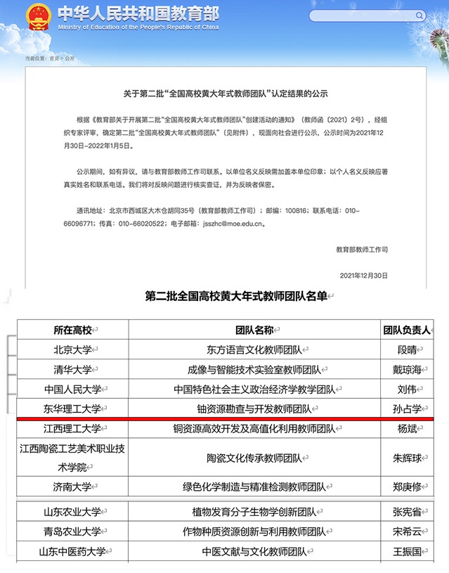 六、多宝网铀资源勘查与开发教师团队入选第二批全国高校黄大年式教师团队。