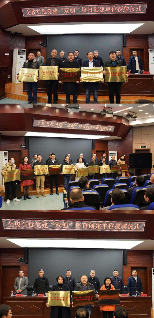 2月10日下午,全校首批党建“双创”培育创建单位授牌仪式在广兰校区行政楼一楼报告厅举行。校党委书记张福庆出席会议并讲话,校党委副书记刘紫春主持会议,校领导郭福生、邱建丁、杨波、刘云海出席会议。
