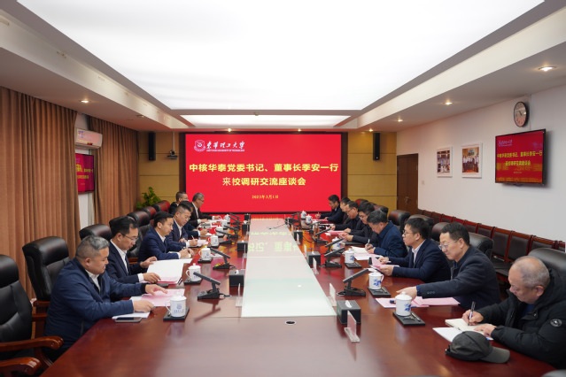 3月1日上午,中核华泰党委书记、董事长季安,党委委员陈传玉,党委委员、副总经理何锦一行来校调研交流,学校在南昌广兰校区行政楼401会议室召开座谈会。我校党委书记张福庆,党委副书记、校长孙占学出席会议,党委常委、副校长夏菲主持会议。