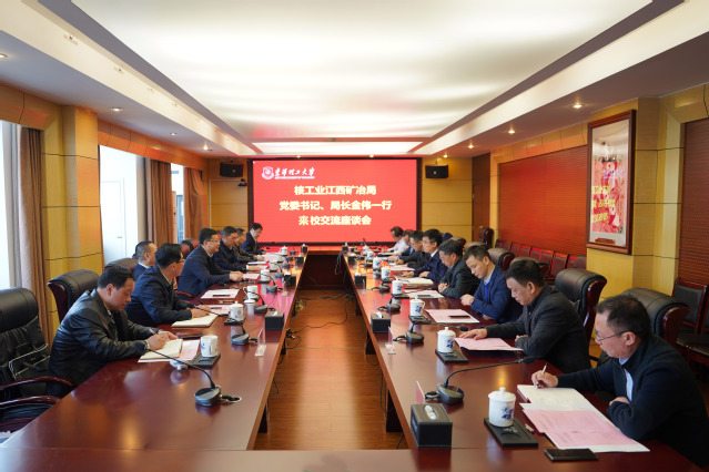 金伟对学校热情接待及长期以来的支持表示感谢,对学校近年来取得的成绩表示祝贺,并简要介绍了核工业江西矿冶局基本职能、管理体系、科研生产体系、未来发展规划。希望在前期合作基础上,进一步拓展合作渠道,建立更为长期、紧密、有实效的多元合作关系,共同为服务国家铀矿地质事业发展和江西经济社会发展作出新的更大贡献。