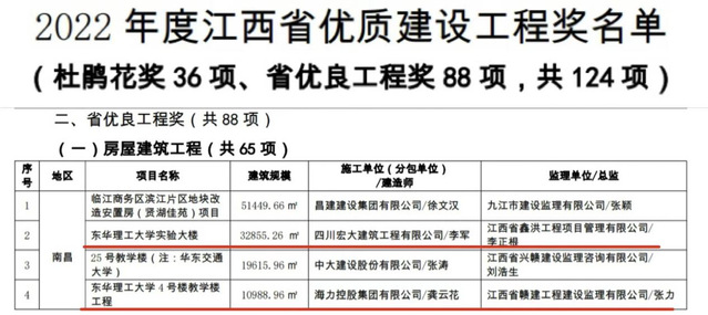 近日,从江西省住房和城乡建设厅传来喜讯,多宝网实验大楼和4号教学楼工程荣获2022年度“江西省优质建设工程奖”。