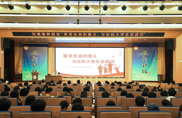 刘紫春用钟南山、黄大年等前辈的事例以及东华理工校内优秀教师周义朋扎根戈壁、李荣同投身乡村振兴的事迹,教导学生认识到人生的“成功”应该是“将平凡做到极致”“将小我融入大我”“将底线坚守一生”。讲座中,他还结合自身经历及感悟,提出了打开成功的“三把钥匙”——博学、高情商、勤奋努力。