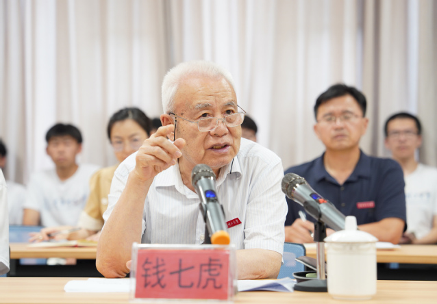 张福庆在主持时指出,创设“钱七虎班”是学校深入贯彻落实习近平总书记关于教育、科技、人才的重要论述和党的二十大精神的具体举措,旨在培养具有家国情怀、精英素养、全球视野,富有创新精神、实践能力和社会责任感的拔尖创新型人才。张福庆强调,“钱七虎班”全体同学要明确目标,在追求高远、积极进取中提升人生境界;善于学习,在追求卓越、精益求精中提升学习能力;加强锻炼,在强健体魄、陶冶情操中永葆朝气活力;牢记使命,在“敦本务实、崇义奉公”的校训精神中立志科教报国。