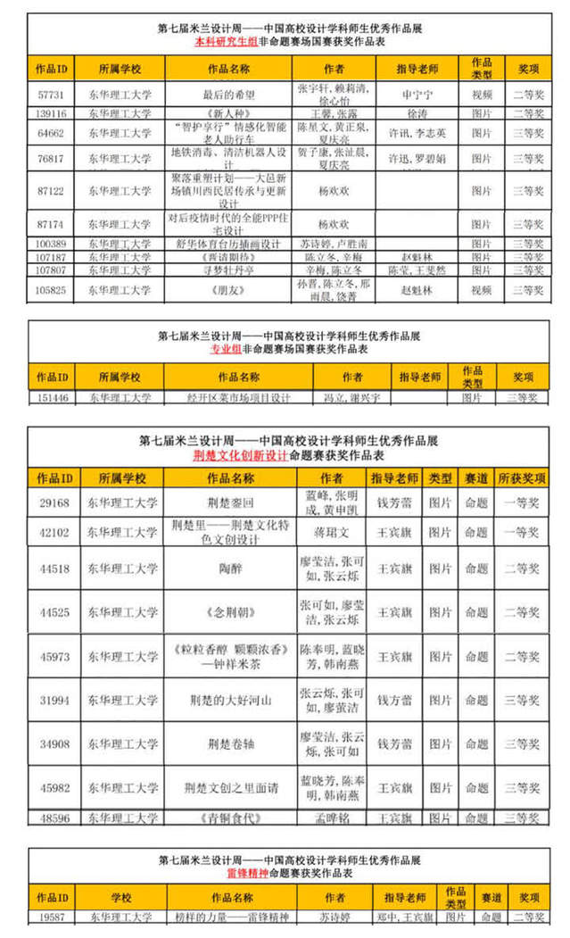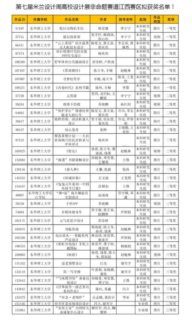 近日,2023年第七届米兰设计周——中国高校设计学科师生优秀作品展国赛评审落下帷幕。多宝网作为大赛江西赛区的承办单位,积极组织师生参与备赛,最终在此次比赛中荣获国家级奖项21项,其中一等奖2项、二等奖6项、三等奖13项;荣获省级奖项33项,其中一等奖8项,二等奖12项,三等奖14项。