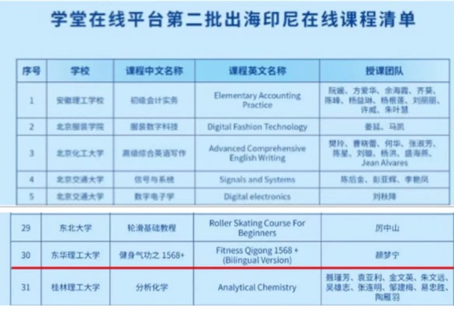 近日,多宝网体育学院一门双语慕课《健身气功之1568+》成功入选学堂在线平台第二批“出海”印尼在线课程清单。课程将助力印尼高校在线教学服务,实现了东华理工国际教育再创佳绩。