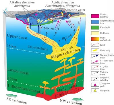 近日,多宝网核能安全与辐射监测技术及仪器团队在相山铀矿成因理论研究上取得了重要进展,余辉博士后和邓居智教授的研究成果“Electrical image of magmatic system beneath the Xiangshan volcanogenic uranium deposit, southeast China: Linking magmatic evolution and uranium metallogenesis”在国际地学TOP期刊《Geology》上发表。