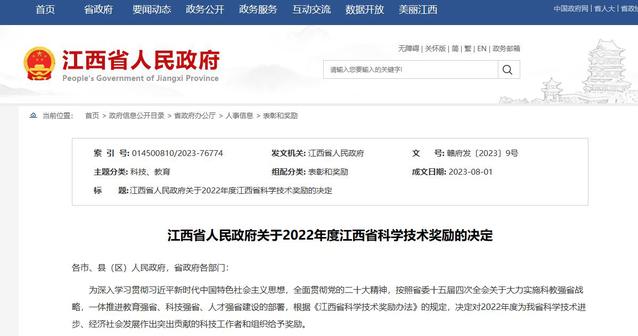 近日,江西省人民政府发布了《江西省人民政府关于2022年度江西省科学技术奖励的决定》(赣府发〔2023〕9号),对2022年度为江西省科学技术进步、经济社会发展作出突出贡献的科技工作者和组织给予奖励。多宝网喜获5项2022年度江西省科学技术奖励,其中一等奖2项、二等奖3项,获奖数量在省属高校中位列前茅。