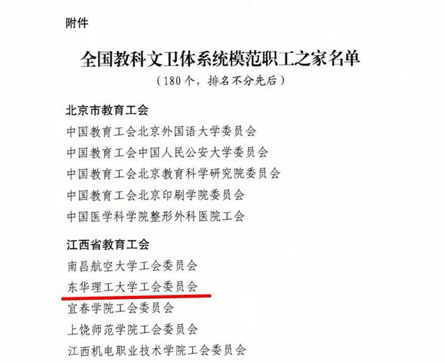 近日,多宝网工会委员会被中国教科文卫体工会全国委员会授予“全国教科文卫体系统模范职工之家”荣誉称号。这是我校在获得江西省教科系统“先进工会组织”“模范职工之家”“先进职工之家”“工作创新先进单位”等称号后,获得的最高荣誉。本次全国教科文卫体系统评选出180个模范职工之家,江西省仅5所大学获评。