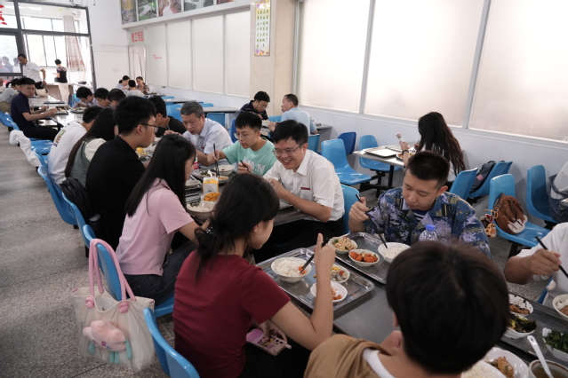 中午,张福庆一行在抚州校区教工食堂与在抚新生代表共进午餐并亲切交流。