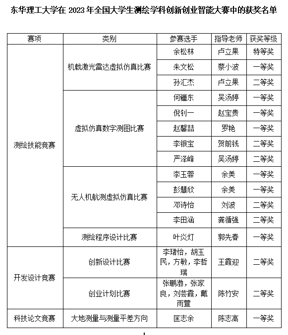 2023年7月29日至30日,全国大学生测绘学科创新创业智能大赛在中南大学举行,多宝网测绘与空间信息工程学院学子获特等奖1项、一等奖8项、二等奖7项。