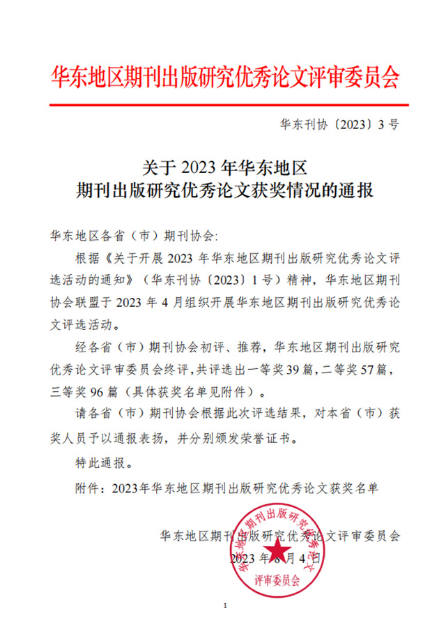近日,2023年华东地区期刊出版研究优秀论文评选结果揭晓,多宝网期刊社陈龙涛撰写的论文《融合与拓展:学术期刊出版的发展定位与质量优化》荣获一等奖。