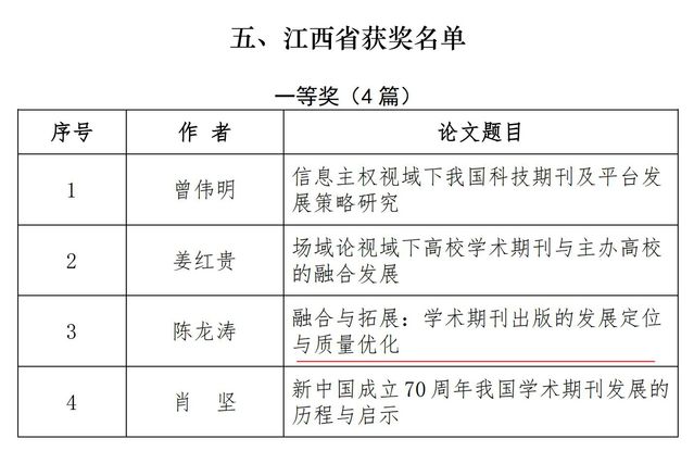 据悉,此次华东地区期刊出版研究优秀论文评审委员会共评选出一等奖39篇,二等奖57篇,三等奖96篇。其中,江西省共有一等奖4篇,二等奖6篇,三等奖10篇。(文/图 王运)