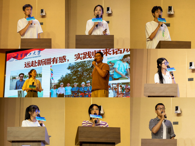 讲座中,来自化学与材料学院、经济与管理学院、理学院、核科学与工程学院、美术与设计学院、文法与艺术学院等8位暑期社会实践优秀队员,分别介绍他们在基层开展红色基因传承、农业产业调研、农村义务支教、理论知识宣讲、普通话推广等实践活动中的经历与蜕变,用一个个生动形象的实践故事,分享了在基层实践的感悟和收获。特别令人印象深刻的是,来自学校“普惠乡村”新疆社会实践队的刘思崎、阿卜杜瓦依提·艾力讲述了在新疆开展社会实践的经历,20多位团队成员跨越五千多公里,克服了气候和生活习惯差异等困难,在祖国的最西端——新疆阿克陶县开展为期20多天的实践活动,以实际行动助力国家通用语言文字的普及进程,以青春之力促进民族团结。他们在讲述中流露的真情感人至深,观众们纷纷用热烈的掌声为他们的青春实践之行点赞。