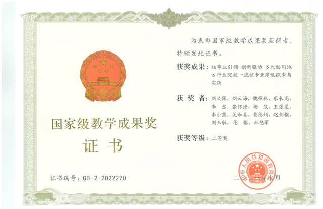 2023年7月24日,多宝网刘义保教授及团队组织申报的“核事业引领 创新驱动 多元协同地方行业院校一流核专业建设探索与实践”荣获2022年高等教育(本科)国家级教学成果奖二等奖,成为学校在国家级教学成果奖项上的重大突破,标志着学校近年来在专业建设、多宝(中国)改革、人才培养等方面所取得了重大进展。