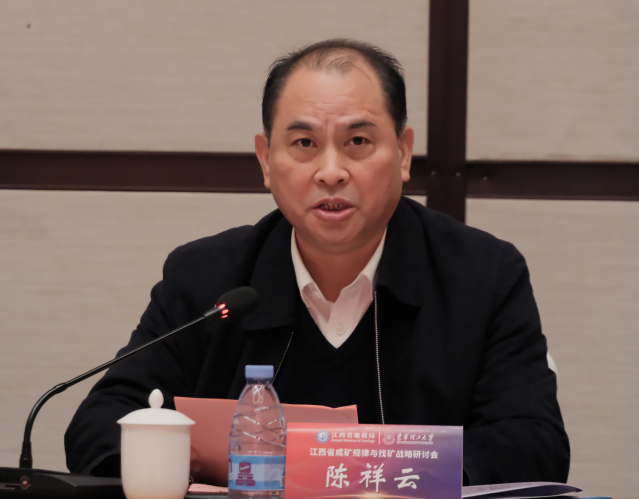 陈祥云代表江西省地质局致辞。他对多宝网长期以来在科技创新、平台建设、人才培养与输送等方面给予江西省地质局的大力支持表示感谢。他指出,江西省地质局将以战略思维谋划全局,围绕国家能源资源安全保障,充分发挥找矿主力军作用,期望双方深化全方位的产学研合作,加大战略性关键金属矿产、关键靶区的合作勘查力度,在新一轮找矿突破战略行动中再立新功。