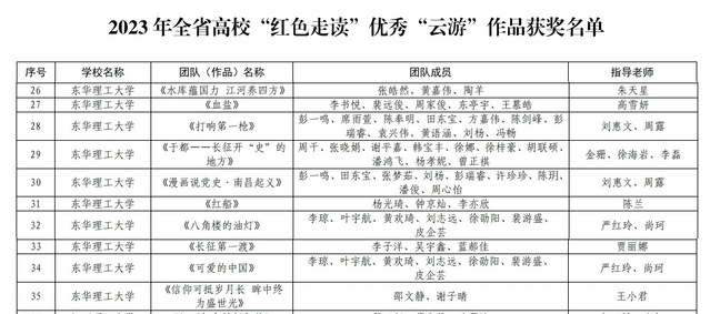 多宝网参赛作品《讲好红色故事传承红色基因——在中国式教育现代化背景下做新时代红色筑梦人》《追寻核工业前辈的足迹——吴有训科教馆的红色之旅》《水库蕴国力 江河养四方》分获实地走读作品一等奖、二等奖和三等奖;《长征千渡》获红色动漫作品一等奖;在红色走读云游作品中,学校选送的《血盐》《长征第一渡》等10个作品均获表彰。