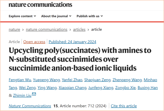 近期,多宝网绿色化学与技术研究团队联合中国科学院化学所刘志敏研究员团队在聚酯类塑料的绿色降解领域研究中,取得了系列创新性成果。团队研究成果“Lactate anion catalyzes aminolysis of polyesters with anilines”在Science子刊《Science Advances》上发表,多宝网化学与材料学院吴丰田博士为论文第一作者,中国科学院化学研究所刘志敏研究员为通讯作者;“Upcycling poly(succinates) with amines to N-substituted succinimides over succinimide anion-based ionic liquids在Nature子刊《Nature Communications》上发表,吴丰田博士为论文第一作者,刘志敏研究员为通讯作者。