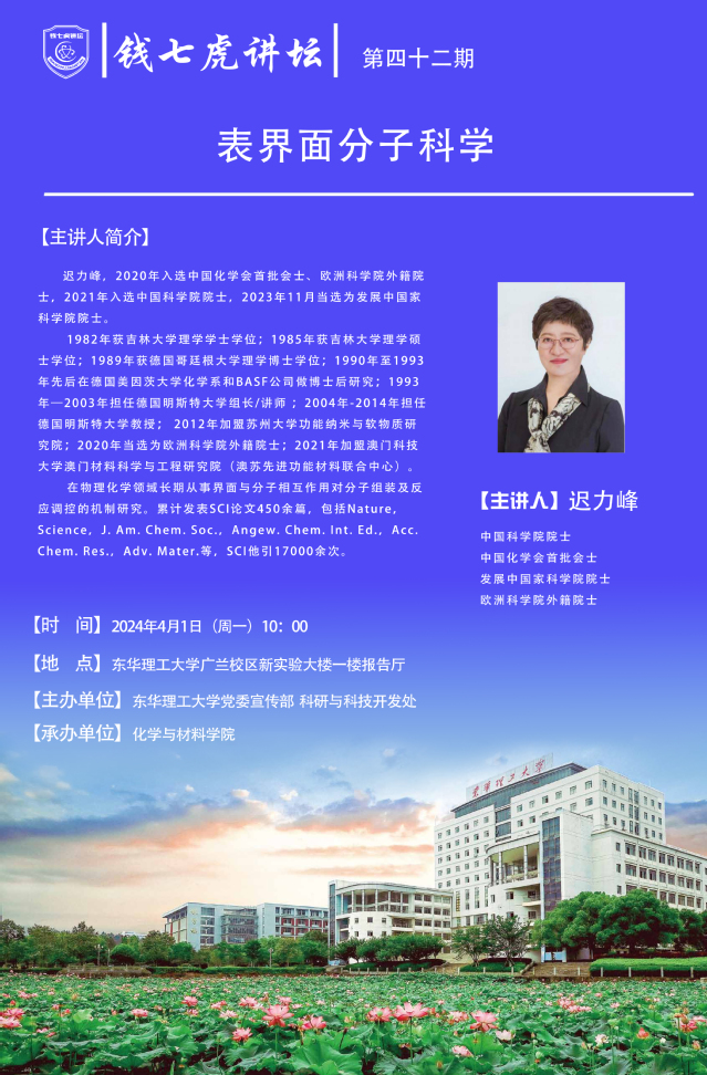 应化学与材料学院邀请,中国科学院院士迟力峰来到“多宝网”,以“表界面分子科学”为主题开展讲座。欢迎全校师生届时前往聆听。